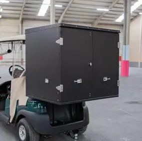 Weer of geen weer, met deze all-weather utility cart gaan uw werkzaamheden altijd door. Dit model van Quick Rentals combineert een volledig afsluitbare laadbak met een beschermende regenhoes voor de bestuurder. Ideaal voor technische diensten, housekeeping of postbezorging op grote terreinen waar kostbare materialen droog en veilig vervoerd moeten worden. Omdat dit voertuig is gebouwd voor zwaarder werk, is het chassis standaard voorzien van verzwaarde bladveren. Hierdoor blijft de wegligging stabiel, zelfs met 350 kg lading achterin. De ruime laadbak is flexibel in te delen dankzij het verstelbare niveau. Een complete, refurbished oplossing voor intensief, jaarrond gebruik.