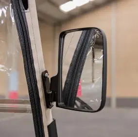 Ondanks de dichte opbouw houdt u overzicht. De cart is standaard uitgerust met grote buitenspiegels aan de regenhoes, zodat u veilig kunt manoeuvreren en achteruitrijden zonder dode hoeken.