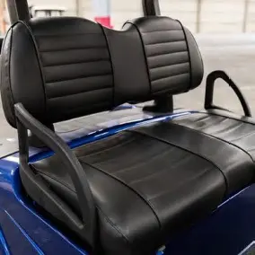 Standaard uitgerust met ‘Deluxe zittingen’. Deze ergonomisch gevormde stoelen bieden meer steun en comfort dan standaard banken, en geven de cart direct een hoogwaardige, luxe uitstraling.